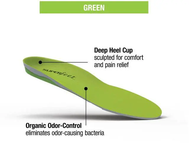 Superfeet Insoles for Odor Control: Moisturewick top cover helps reduce odors and keeps feet fresh; high density closed-cell foam supports the whole foot