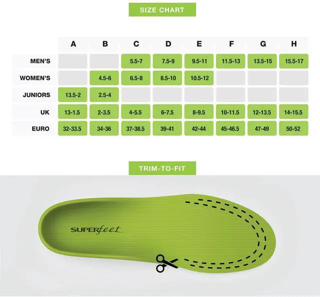 Trim to Fit: Superfeet insoles are made to be trimmed to fit your shoes and boots; follow cutting instructions before use, and if you're between sizes, size up and trim down to fit