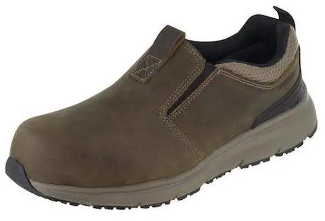 California Proposition 65: This product contains a chemical known to the State of California to cause birth defects or other reproductive harm. The Thomason NT is an easy on, easy off, slip on nano toe work shoe that offers all the convenience of a slip on, yet sacrifices nothing in the level of protection for a work shoe. The upper is constructed with a rich, full grain, oiled leather and features a twin elastic gore opening. The Thomason NT features a Nano toe for protection. The Nano toe meets or exceeds all ASTM safety standards. The Thomason NT's rubber outsole is slip and oil resistant as well as features static dissipative properties. With a memory foam and PU insole, and a compression molded EVA midsole, both constructed with static dissipative features, the Thomason NT offers superior rebound for all day long comfort.