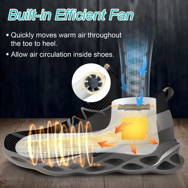 Built-in exhaust fan creates a warm airflow inside the shoe for quiet and effective drying.