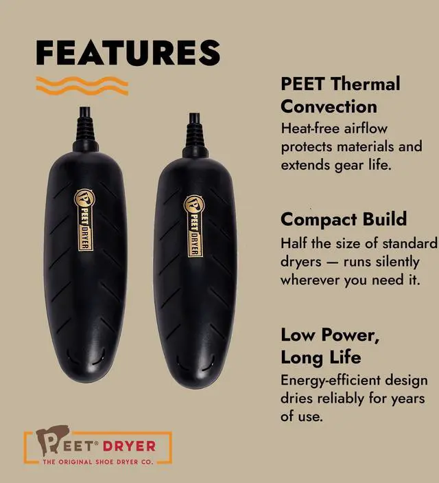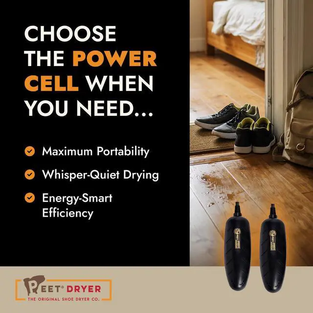 Portable Boot Dryer: Weighing just 1 lbs, this lightweight dryer plugs in anywhere & allows you to bring "PEET Dry" comfort with you on the go; Removes moisture, sweat & odor from your footwear, keeping your feet comfortable & dry