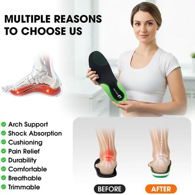 Lightweight and Ultra-Rebound: Crafted with revolutionary supercritical foaming, our orthotic insoles deliver approximately 67% greater elasticity than standard EVA. And the lightweight design makes your feet comfortable and supported, so you can walk farther and easier