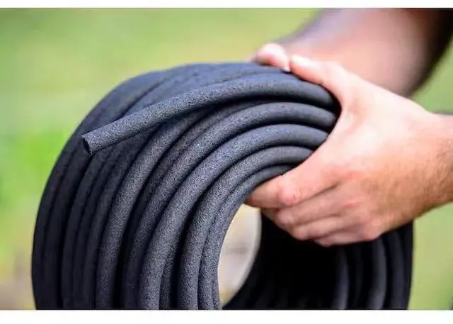 Soaker hose with pores that slowly release water directly to plants' roots, reducing evaporation for more efficient watering
