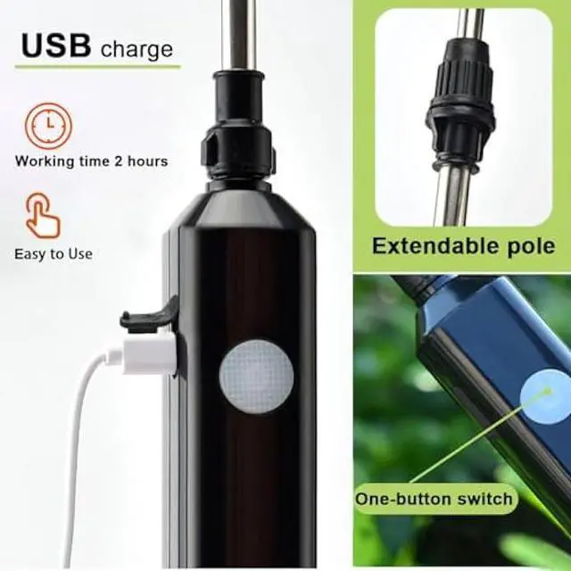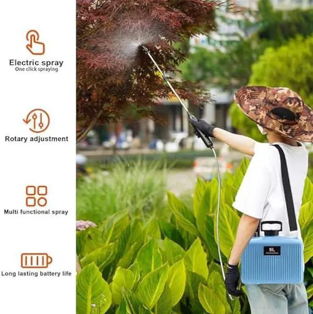 Efficient GardeningSay goodbye for manual pump sprayer that make our hands sore, use new electric pump sprayer, simply press a button for spraying automatically. The handle has a built-in 2200mAh battery with 3-hour spraying time per Type-c USB charged