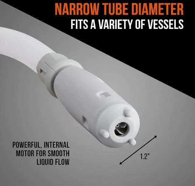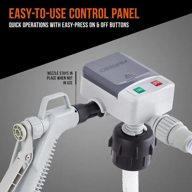 Tired of money down the drain? Siphon like a pro with this multipurpose Electric Transfer Pump from Deway. Easy, one-touch activation has you transferring all kinds of gas, oil, water, and other liquids without the hassle of bulky hoses, inconvenient hand pumps, or heavy lifting. Our lightweight, high-speed siphon delivers a powerful 2.4 gallon per minute flow at the touch of a button, with long-lasting battery usage that enables up to 100 gallons of transfer power. With two convenient hose length options, you can purchase based on your preferences, with the shorter hose providing greater pump speed and the longer hose offering greater maneuverability. When youve made your choice, just place the suction pipe into the supply container, position the drain spout into any receptacle, press On, and watch liquid move instantly. Whether youre changing tank water, filling a generator, emptying lawn equipment, or storing your motorcycle for the season, this all-purpose device gets the job done fasterand saferthan siphoning by mouth (and other transfer methods). Conserve fuel, and never spill a drop! Add an Electric Transfer Pump from Deway to your cart today! The handiest hose ever Siphoning liquid can be messy, time-consumingeven dangerous. But with the Deway Electric Transfer Pump, moving gas, oil, and other fluids is made fast and simple. Our speedy system features a long bendable suction hose, slim, durable nozzle, and electric, easy-operation pump with automatic shutoff for empty receptacles. Simply connect your two containers, press On, and let the liquid flow for up to 100 gallons per battery pack! Portable Design No heavy machinery. No scoops. No funnels. Keep your transfer pump on hand for easy anywhere suction power!