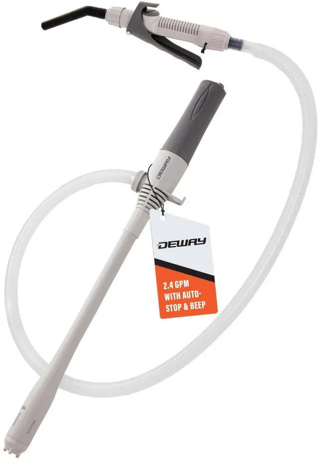 Deway Automatic Fuel Transfer Small 15" Pump, Nozzle for Quick Flow Control & Stop, Powerful D Battery Powered, 39" Extra Long Hose Fits All Size Cans, Portable Liquid Pump Transfers at 2.4 Gal/Minute