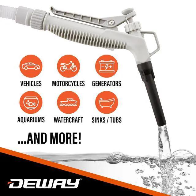 For years, mechanics, groundskeepers, hobbyists and homeowners have had to deal with the messy process of moving liquids from one vessel to another. Now, with this powerful Transfer Pump from Deway, you can finish the task with the flip of a switch! Designed for maximum reach and overall ease of operation, the portable device does all the back-breaking labor on just two AA batteries. Our extra-long suction and transfer tubes ensure utmost flexibility. When it comes to anything involving gasolineconsider it a game changer! Siphon stress-free by adding a Deway Transfer Pump to your cart today!