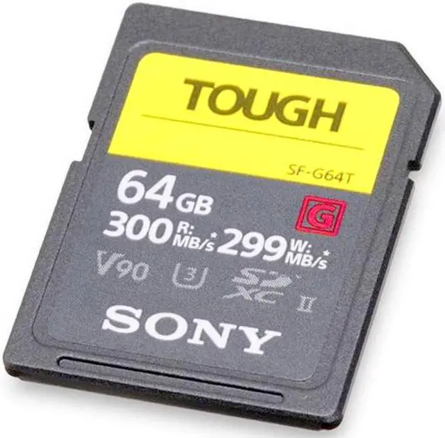 attention to the following: This is a model without a ribbed construction and without a write protect switch Sony has done away with easily breakable parts to increase reliability Fast file transfer guaranteed The SF-G TOUGH series SD cards are designed with reliability in mind. The solid one-piece shape is 18 times more flex-resistant than standard SD cards, and withstands 5m drops, water and dust to IP68 standard.