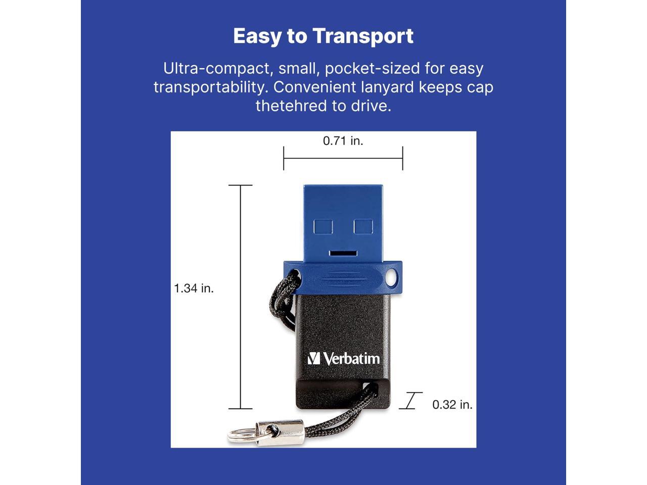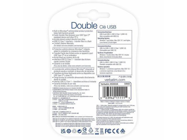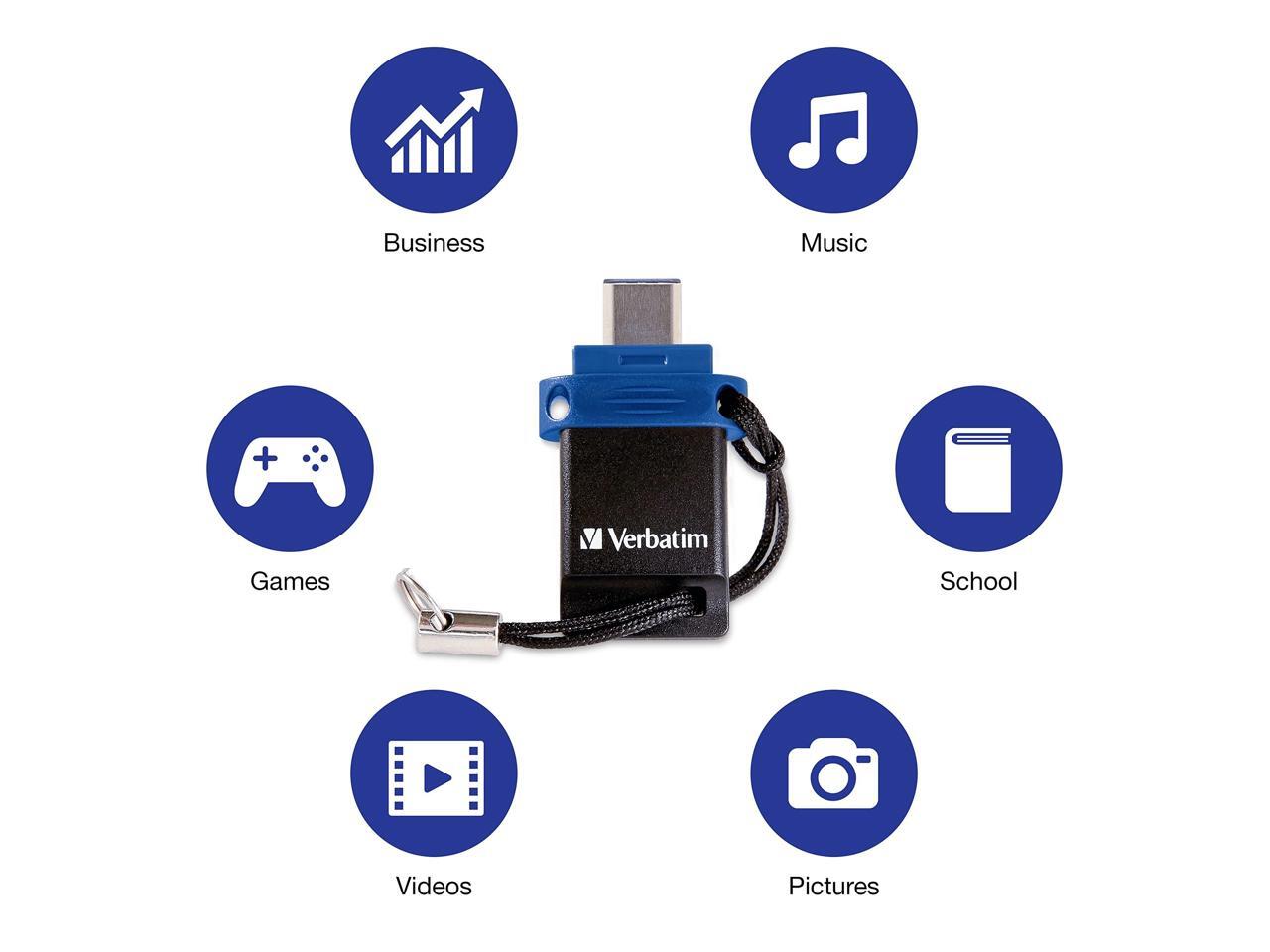 Verbatim Store 'n' Go Dual 128GB USB 3.2 (Gen 1) (Type A + Type C) Flash Drive - 128 GB - USB 3.2 (Gen 1) Type A, USB 3.2 (Gen 1) Type C - Blue - Lifetime Warranty