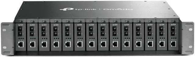 The TL-MC1400 14-Slot Rackmount Chassis is specially designed to accommodate 14 tp-link‘s Media Converters for central power supply, saving space and power cables. Continuous operation is of great importance to fiber communication, so the chassis is equipped with optional redundant power supply and Hot-Swapping function which allows installing/removing the converter without powering off the chassis. Moreover, to stabilize the performance and extend the lifetime, two cooling fans are installed internally. Together with MC series Gigabit / Fast Ethernet media converters, TL-MC1400 is the ideal solution for your media conversion network.