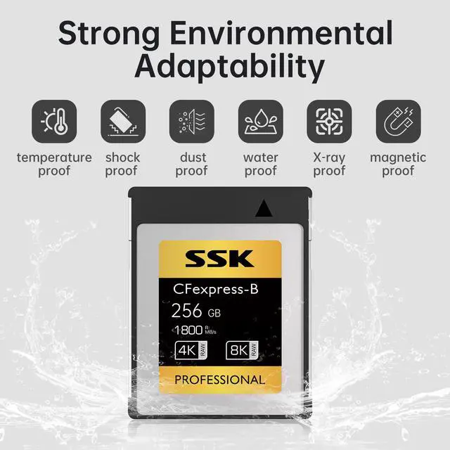 Resilient&unafraid of challenges:Don't let harsh conditions stop you. Camera memory cf express type b card features excellent environmental adaptability and offers comprehensive physical protection, including wide temperature resistance, shock resistance, drop resistance, dust resistance, water resistance, X-ray resistance and magnetic interference resistance, making it the perfect companion for adventures, travel, and tough assignments.