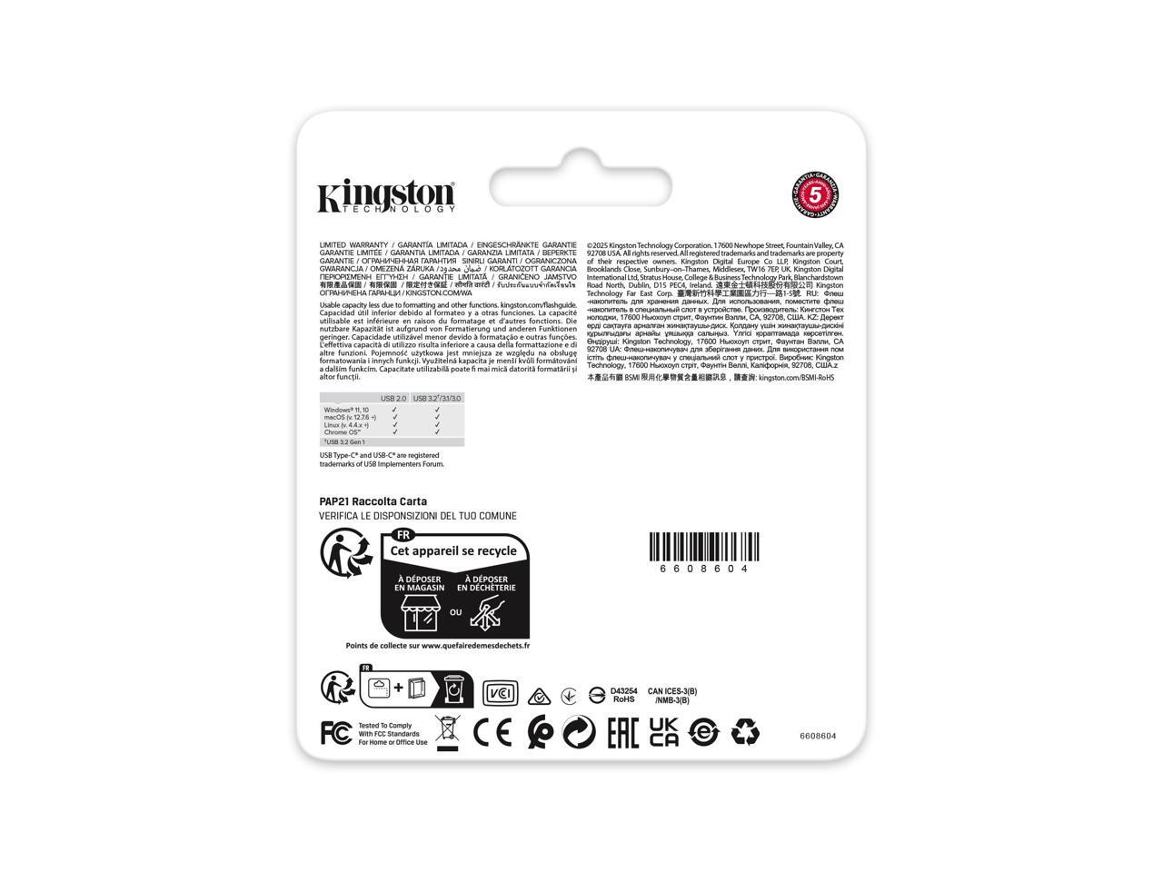 Kingston DataTraveler Duo 256GB (USB 3.2 (Gen 1) Type A + USB 3.2 (Gen 1) Type C) On-The-Go Flash Drive - 256 GB - USB 3.2 (Gen 1) Type A, USB 3.2 (Gen 1) Type C - 5 Year Warranty