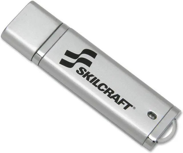 Skilcraft 5584987 USB Flash Drive, Password Protected, 4GB, Silver.