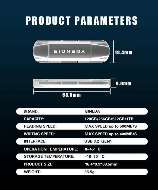- Read 500MB/s & Write 400MB/s