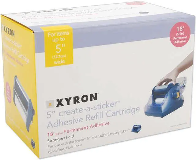 AT1505-18 XYRON 500 REFILL ADHESIVE PERMANENT 18The Xyron Create-A-Sticker turns almost anything into an acid-free permanent or removable sticker instantly Try using clip art die cuts photos fabric cuts doilies ribbon even dried flowers and leaves 500 5 Refill Adhesive Permanent 18 - 5 wide