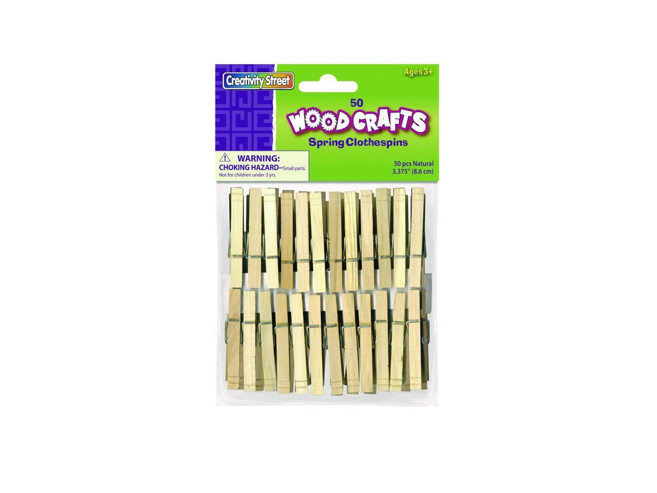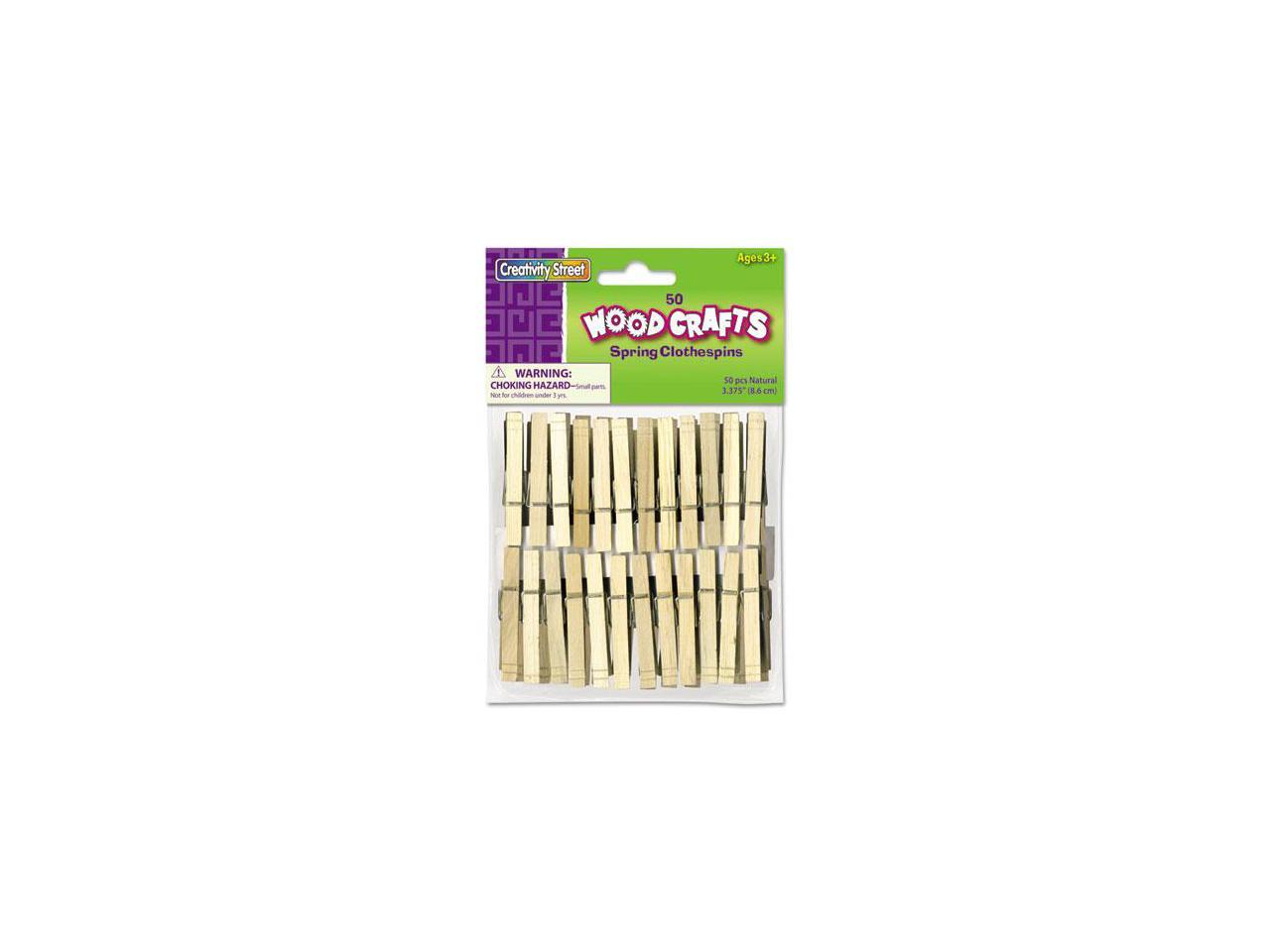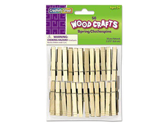 Chenille Kraft 365801 Wood Spring Clothespins, 3 3/8 Length, 50 Clothespins/Pack