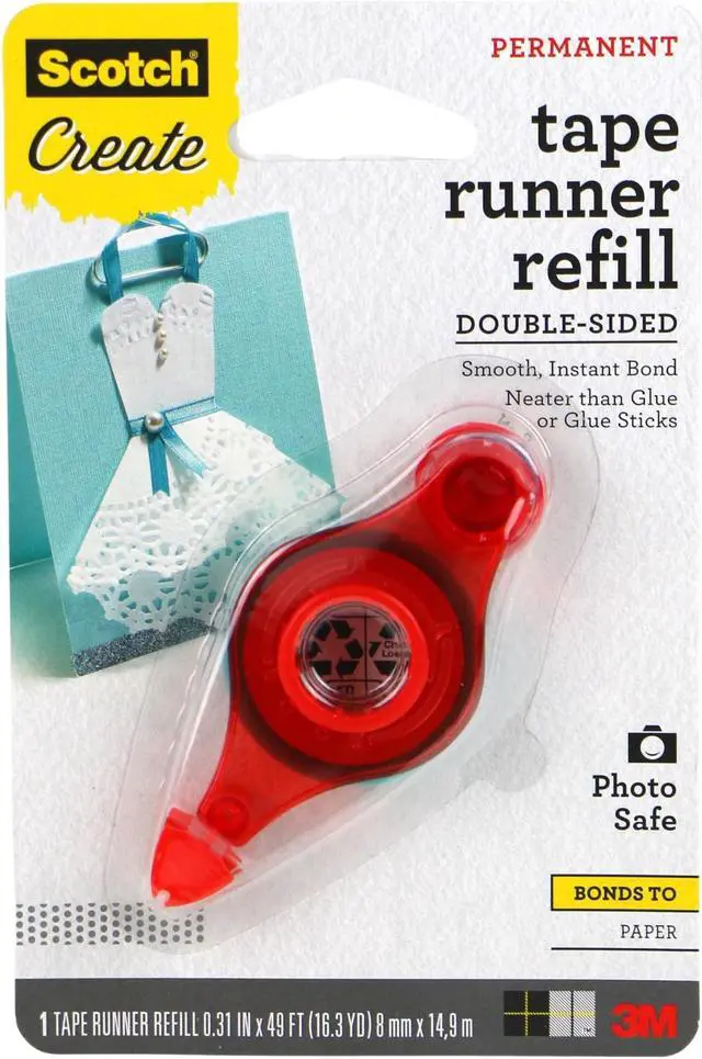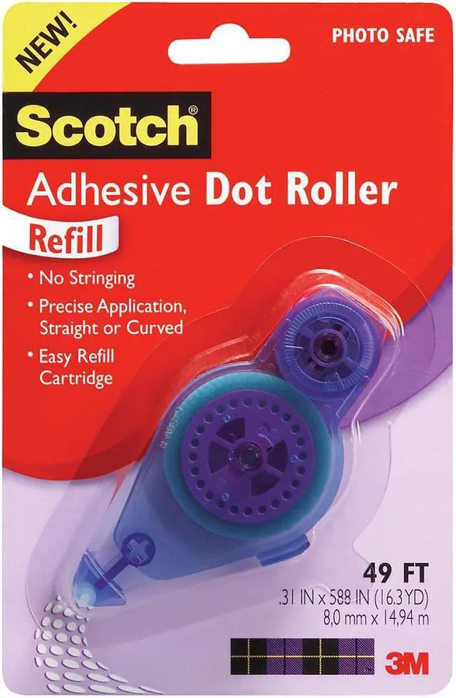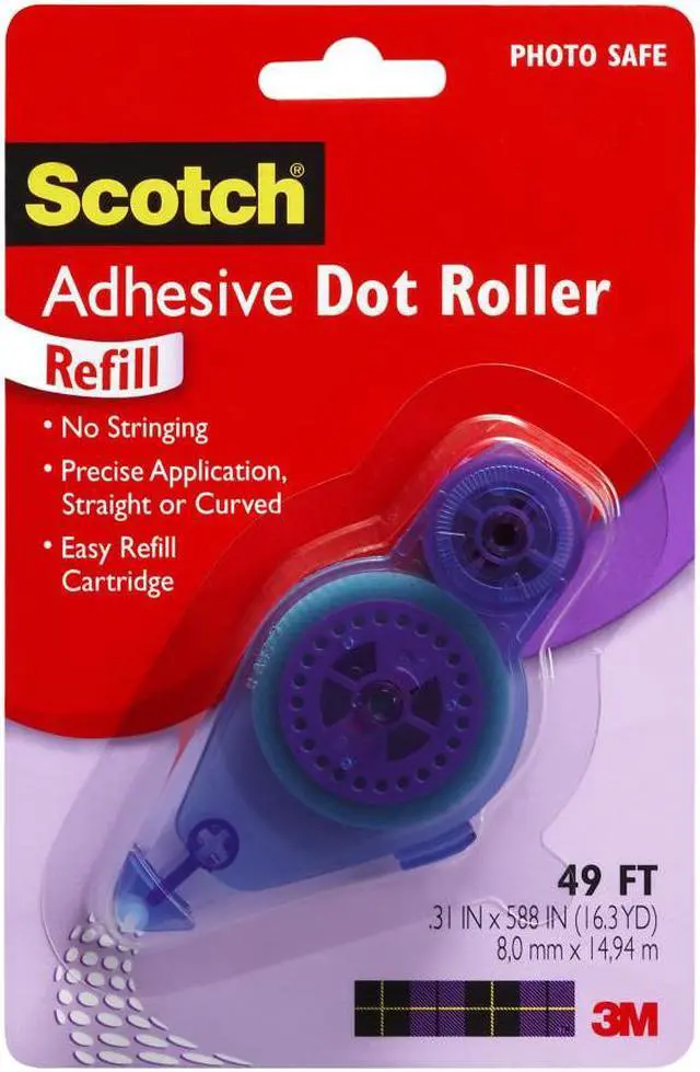 055-R SCOTCH ADH DOT ROLLER TAPE RUNNER REFILL PERM 49Scotch Adhesive Dot Rollers are neater than glue and faster than tape Ideal for scrapbooking and cardmaking with its precise application on either straight or curved lines it applies smoothly to the end of the roll Tape Runner Refill Permanent 49 - Ta