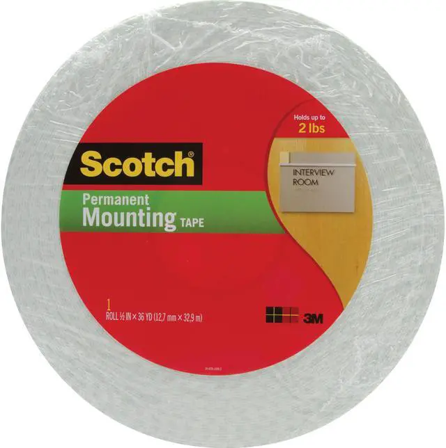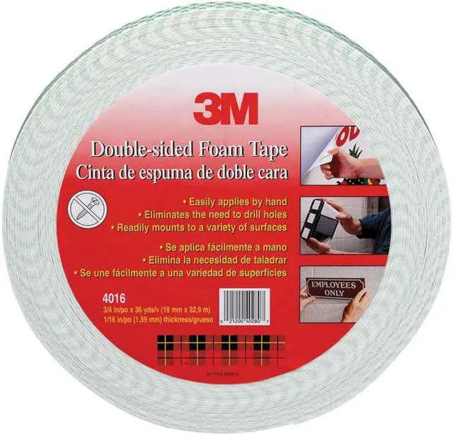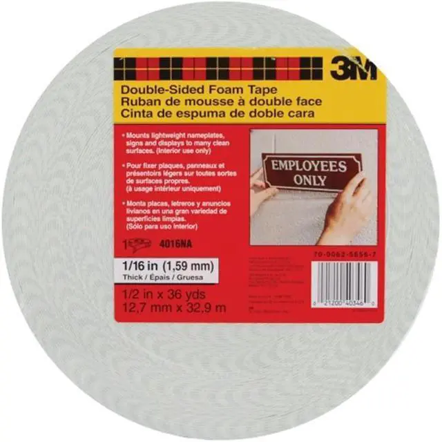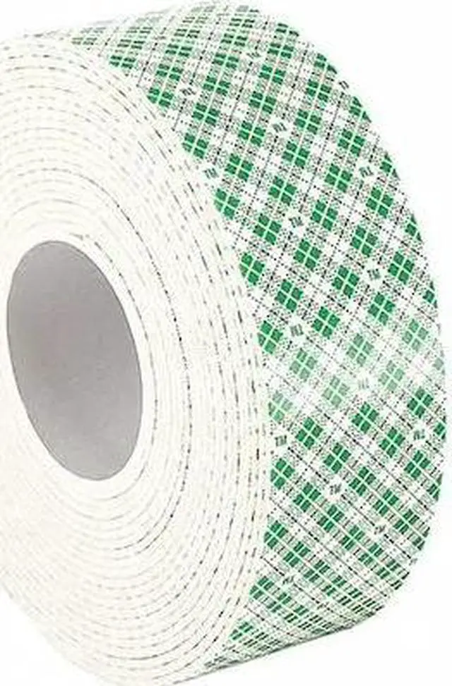 3M 4016 Double Coated Urethane Foam Tape 1" x 5yd continuous roll, White, 1/16" thick with a Green Plaid Paper liner