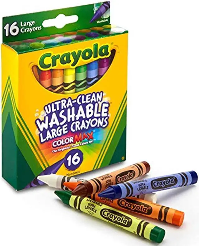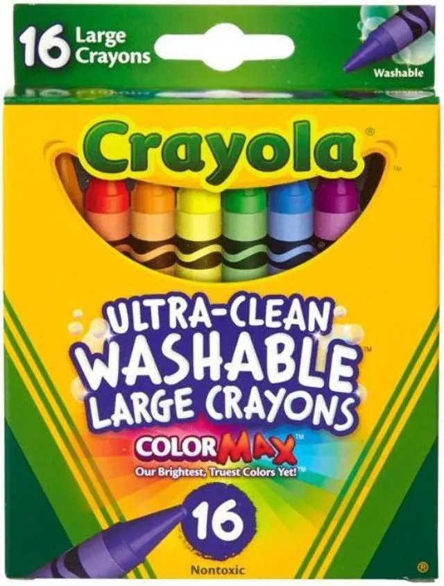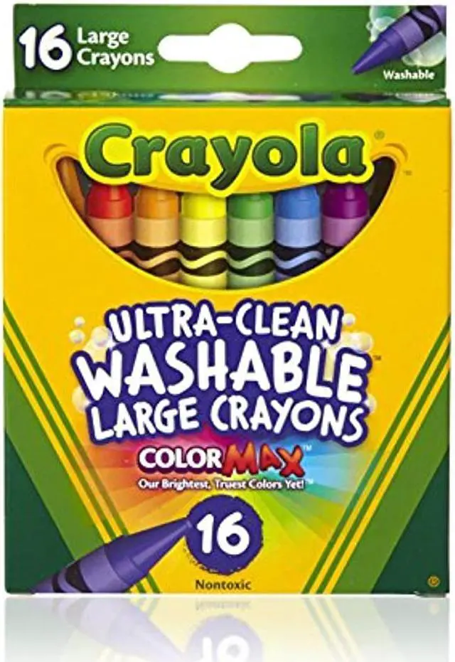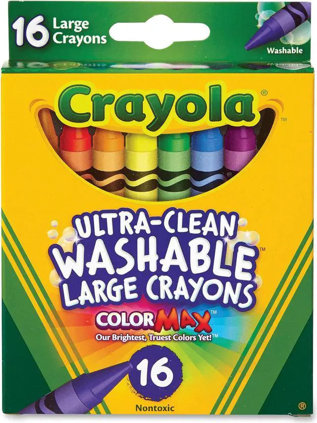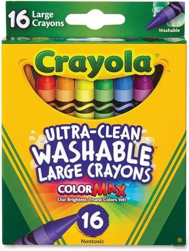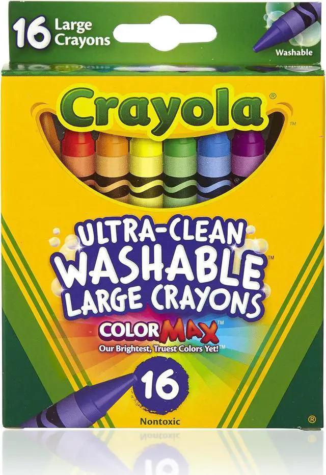 Great for use at home or school, Ultra-Clean Washable Crayons are an essential creative tool for children. Large size is extra sturdy for play with small children. Featuring classic colors as well as bright, fun shades, they inspire self-expression and imaginative play. Washable crayons provide smooth laydown, bright colors and washability. The 16 nontoxic crayons in this pack are specially formulated to wash clean from skin, clothing and even painted walls.