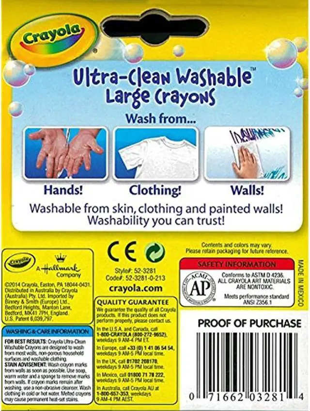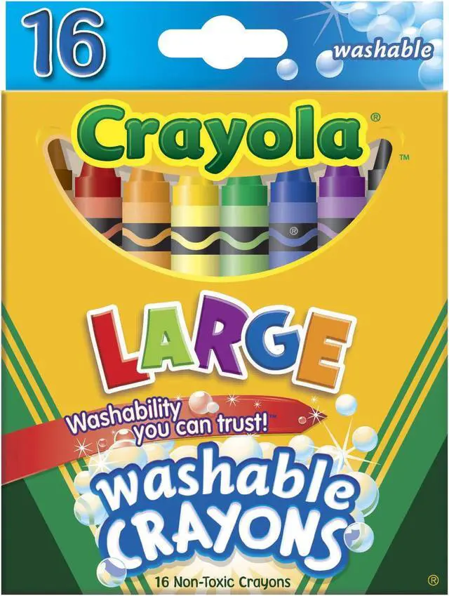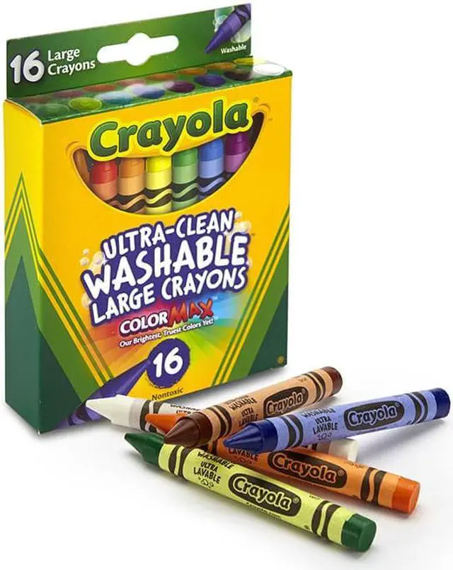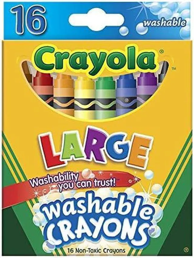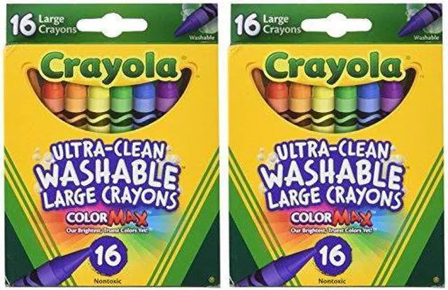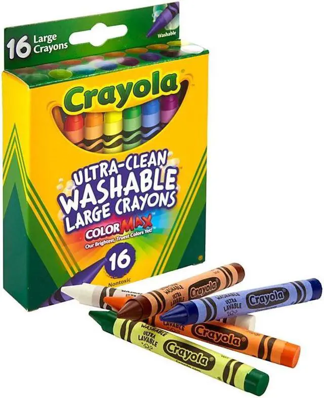 Great for use at home or school, Ultra-Clean Washable Crayons are an essential creative tool for children. Large size is extra sturdy for play with small children. Featuring classic colors as well as bright, fun shades, they inspire self-expression and imaginative play. Washable crayons provide smooth laydown, bright colors and washability. The 16 nontoxic crayons in this pack are specially formulated to wash clean from skin, clothing and even painted walls.