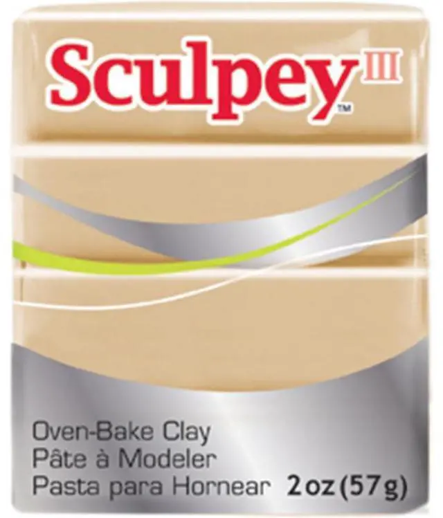 SCULPEY-Sculpey III Polymer Clay. America's original oven-bake clay! Sculpey is soft and pliable, works and feels like ceramic clay but will not dry out when exposed to air. Perfect for everything from molded items to free form jewelry pieces, figurines, ornaments and scrapbooking embellishments. Shape, bake and once cool can be sanded, drilled, carved, glues, inked, painted with water based acrylics or Sculpey Brand Glaze. Weight: 2oz/56g. Available in a wide variety of colors. Conforms to ASTM D4236. Recommended for ages 8 and up. Made in USA.