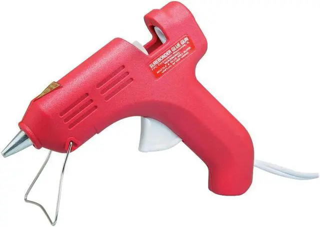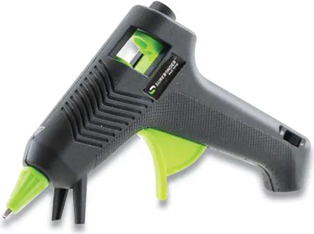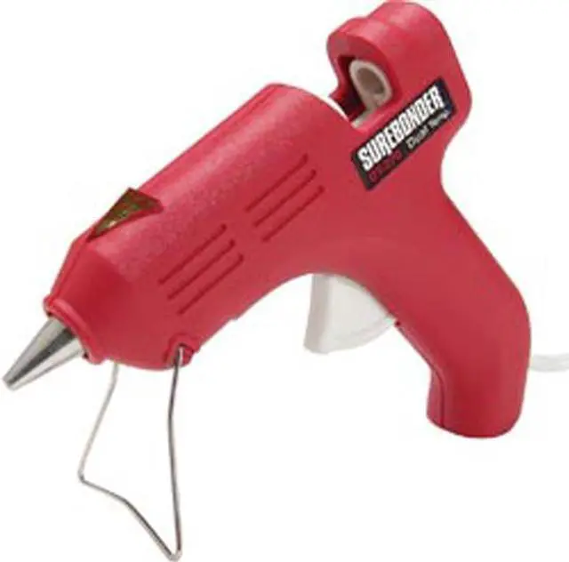 FPC CORPORATION-Surebonder Dual-Temp Mini Glue Gun. High temperature glue gun is ideal for hobbies, arts and crafts, and repairs on a variety of materials including wood, metal, plastic, leather and more. Low temperature is best on lace, ribbon, floral foam, lightweight fabric and other delicate materials. Change the setting simply by flipping the switch on the handle of the gun. This package contains one Dual-Temp 10 watt Mini Glue Gun (measures 5-1/2x3-1/2x1in) with attached power cord (UL Listed E246769) and instructions for use. Uses 0.28 in diameter mini round glue sticks (not included).