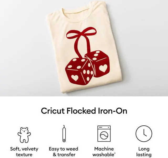 Add a soft, velvety texture to your projects with Cricut Flocked Iron-On. Part of our line of textured iron-on (HTV) materials, it's easy to weed and outlasts multiple washes for long-lasting projects sure to impress. Flocked Iron-On is perfect for T-shirts, sweatshirts, and more. Optimized for Cricut cutting machines and Cricut heat presses.