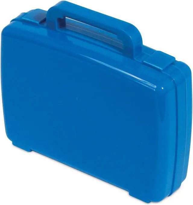 Your child will enjoy carrying their prized possessions in this portable storage case, and youll enjoy a more organized home with the Little Artist Storage Case. This portable case holds photos, activity pads, pens, markers, and other art supplies. Built-in latches keep everything inside, and a kid-sized handle makes it easy for them to hold. Keep the Little Artist Storage Case at home or take it with you in the car so your child can color, draw, or do activities as you travel. SteriTouch is an antimicrobial agent used to inhibit the growth of odor-causing microorganisms, and mold and mildew, which may degrade the product. Art Containers Type: Art Containers-Art Supplies Storage Bin; Material(s): Polypropylene; Color(s): Blue; Container Size: 2.79 x 10.23 x 8.58.