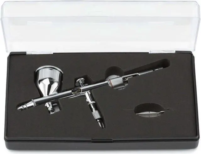 Precision-crafted body provides a balanced feel in the hand. Tight-tolerance, 4-piece head provides extremely fine atomization with razor-sharp detail. Needle backstop at the rear of the airbrush allows you to pre-set the trigger travel; helping produce consistent line widths.