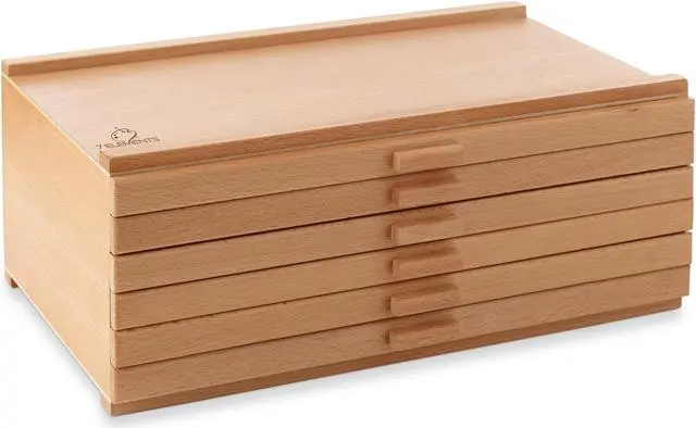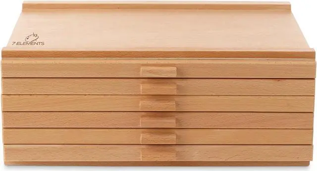 The 7 Elements 6-drawer wooden storage supply box is a great solution for artist of all levels and ages who want to access and store pastels as well as brushes, markers, pens, small accessories and other essential art supplies.