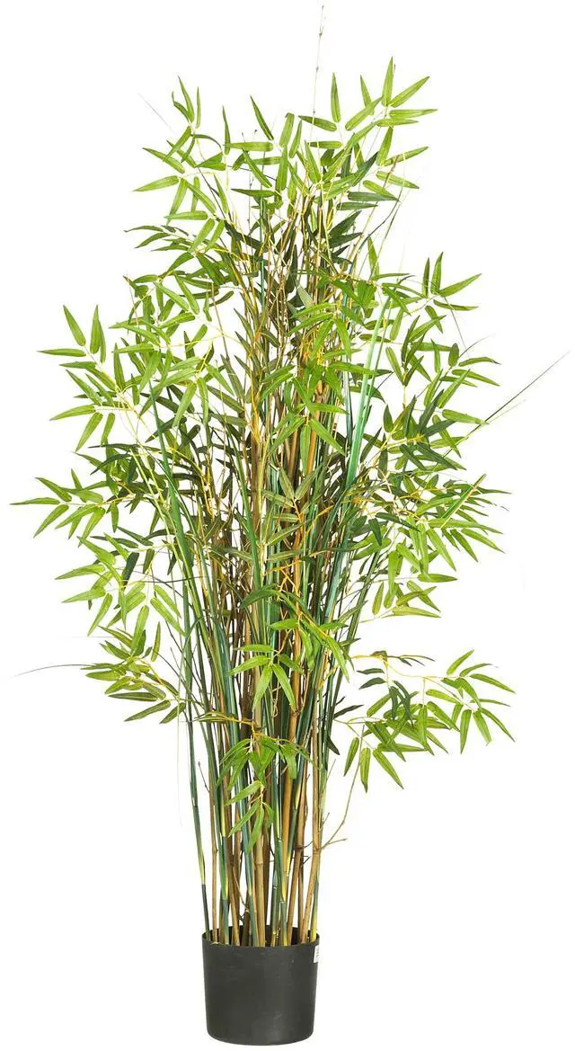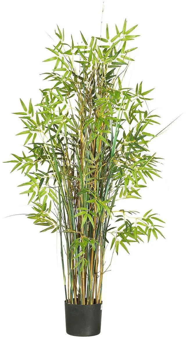 The perfect way to express an eccentric and whimsical style, this magical grass plant surrounded by bamboo is sure to elicit a comment from all who view it. A full 5 feet high, this slender wispy plant is decorated with over seven-hundred bright finely detailed leaves. A mix of delicate bamboo stalks encompass this natural looking plant, extending gracefully between lush green foliage. Fits nicely beside an office desk or display it proudly in a home foyer to greet guests.
