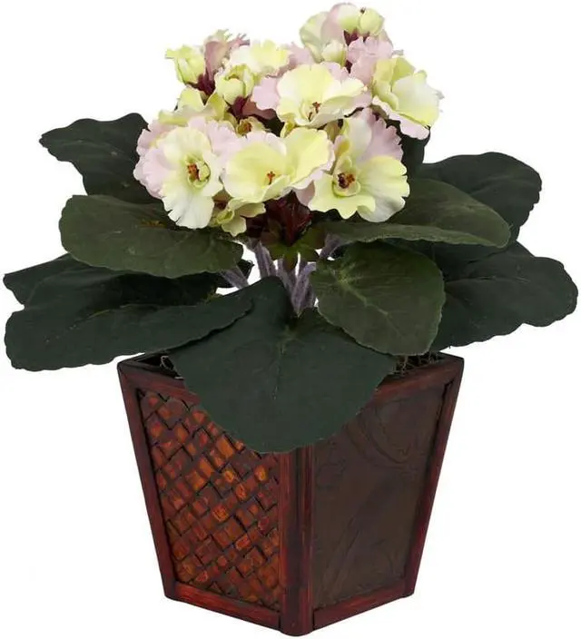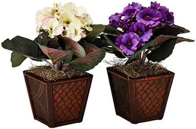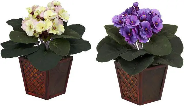 You’ll get twice the beauty with this eye-catching pair of supple African Violets. With a bold, lush bed of green leaves set atop a decorative wood planter, these colorful blooms bring a ray of African sunshine into any room. Place them on either side of a desk or bookcase, or split them up if you wish and brighten up two rooms at once!