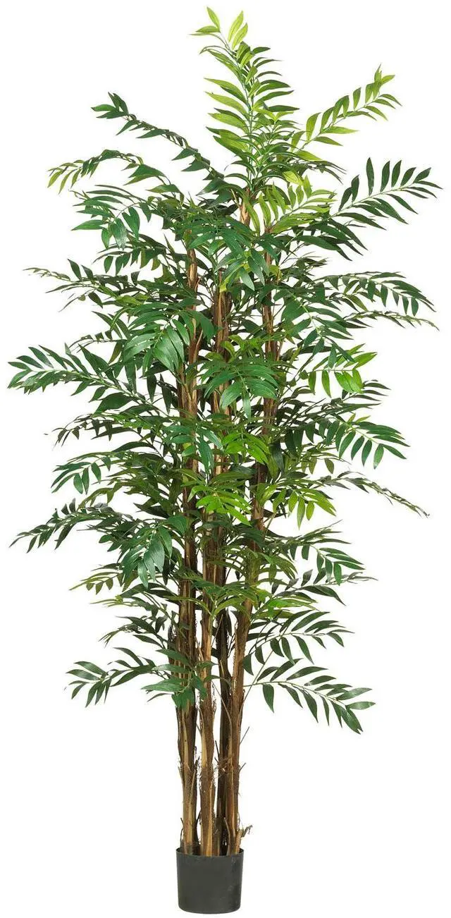 Don’t have the time or patience to grow your own Bamboo Palm Tree? This lovely silk replica produces the same beautiful results without the wait. A full 7 feet high, this gorgeous full grown Reed Palm requires no special care and will thrive in even the harshest of climates. Over fifteen-hundred lush pinnate leaflets adorn this gorgeous native of Mexico.