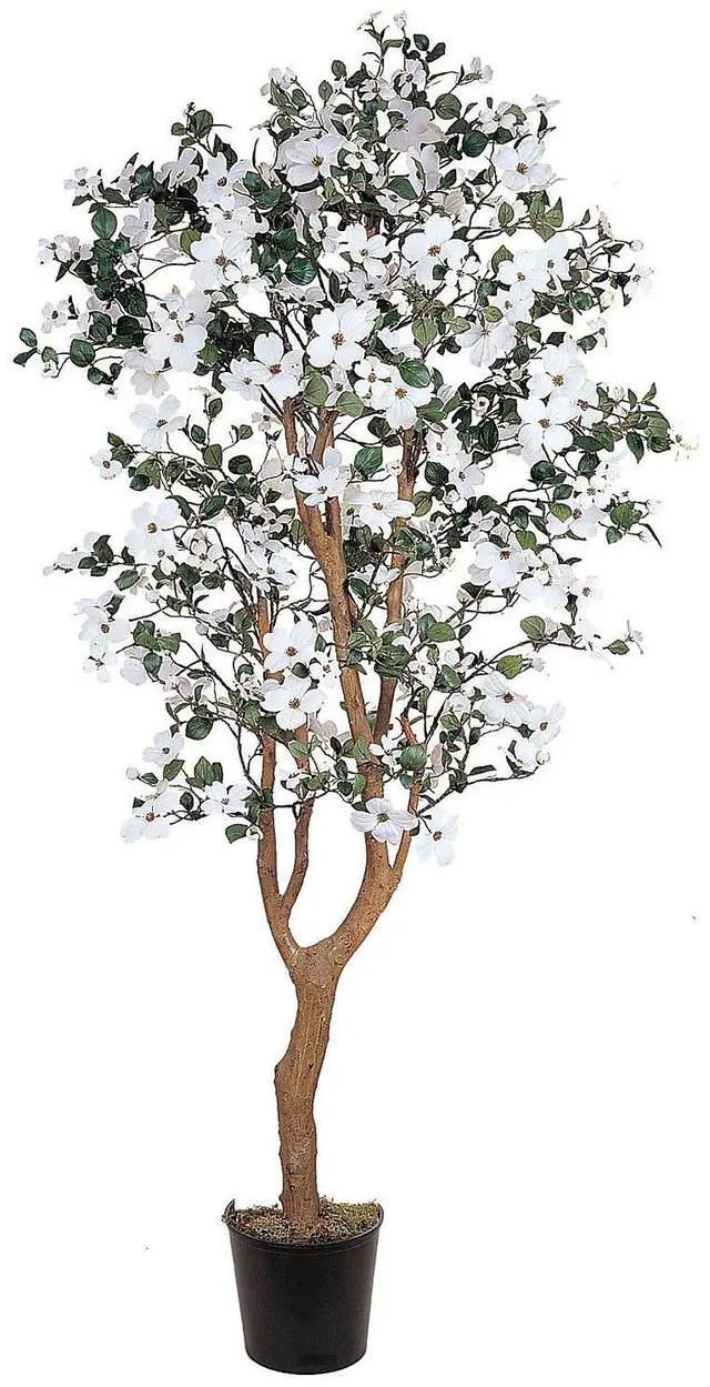 Bring the enchantment of the wonderful dogwood flower into your home. Our 5’ Dogwood Silk Tree starts with one center trunk that branches into a maze of 285 flowers surrounded by 1,140 leaves. It comes professionally arranged in a black plastic pot topped with moss. Color: White, Height: 5’, Flowers: 285, Leaves: 1,140