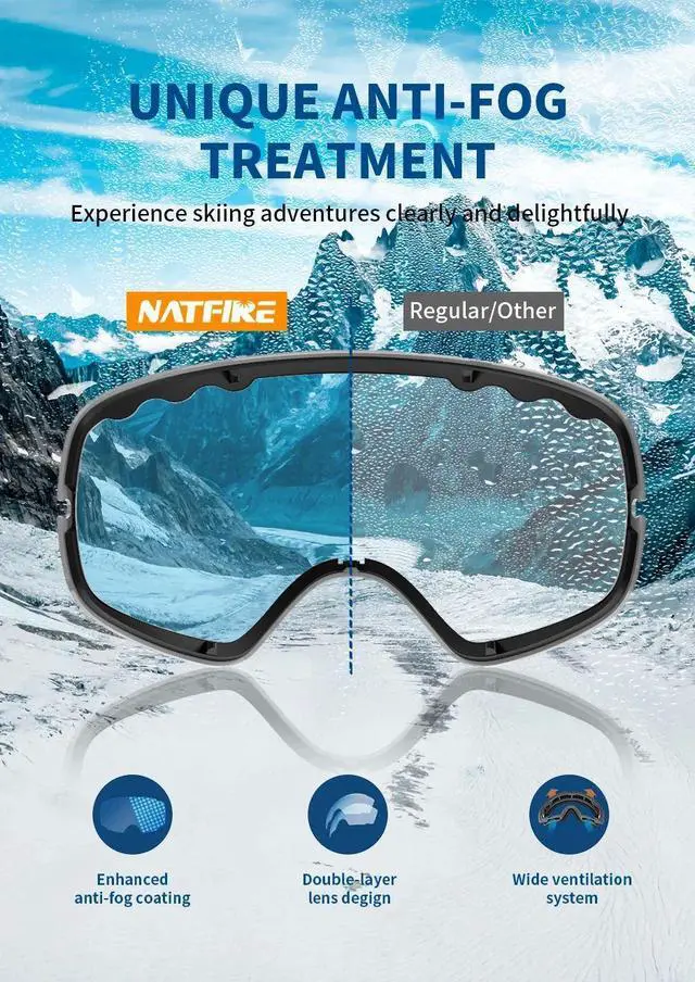 Ski Goggles Pro 100% UV400 Protection Anti Fog Interchangeab