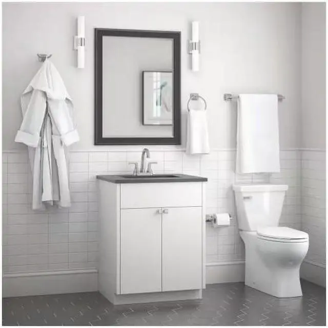 The Delta Portwood Bath Collection's blend of classic curves and softened angles creates a polished look in the bathroom. This wall mount round towel ring keeps hand towels conveniently within reach. Complete your space with coordinating pieces from the full collection