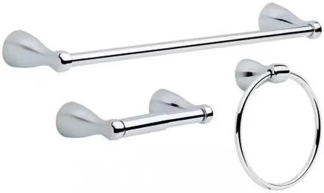 The Delta Foundations Bath Collection offers a modern, casual style. The clean lines and sleek design make this collection a must-have for any modern or transitionally styled bathroom. This wall-mounted 3-piece set gives you the key bath accessories to refresh your space in a flash with an 18 in. towel bar, toilet paper holder, and towel ring. With inspired designs and rich finishes, you will be enjoying this upgrade for years to come.