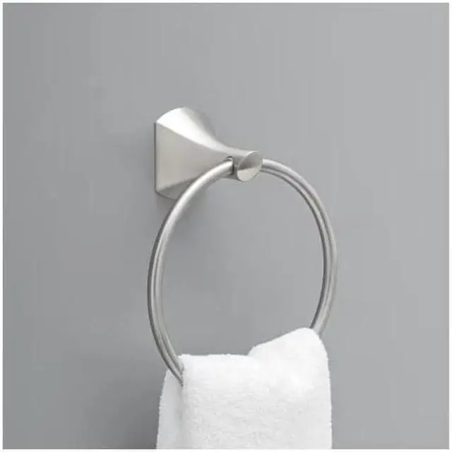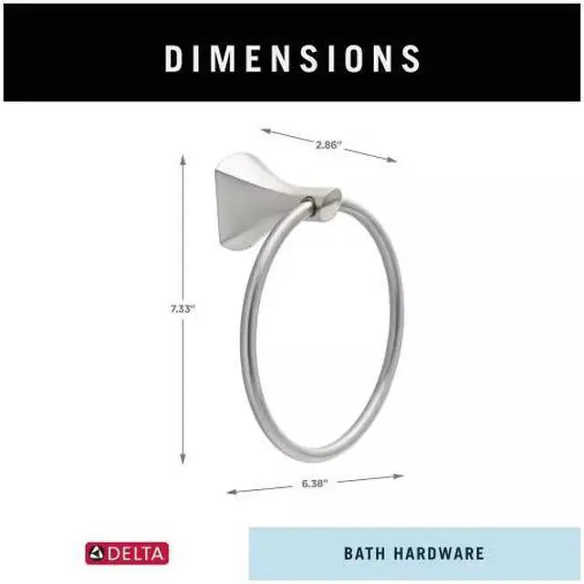 Sweeping curves and sculpted angles combine to create the evolved Delta Pierce Bath Collection. This collection is ideal for baths with blended decor styles. This wall mount round towel ring keeps hand towels conveniently within reach. Complete your space with coordinating pieces from the full collection