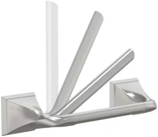 The Delta Everly Bath Collection offers a transitional design, providing a balanced combination of both contemporary and classic qualities. The Everly Collection is ideal for baths with blended decor styles. This wall mount pivoting toilet paper holder keeps your toilet paper rolls secure for use while allowing easy change out. Complete your space with coordinating pieces from the full collection
