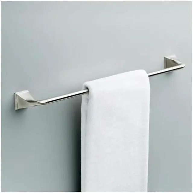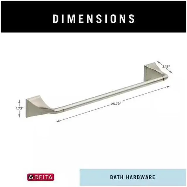 The Delta Everly Bath Collection offers a transitional design, providing a balanced combination of both contemporary and classic qualities. The Everly Collection is ideal for baths with blended decor styles. This 24 in. wall mount towel bar securely holds all types of towels for bathing convenience and organization. Complete your space with coordinating pieces from the full collection