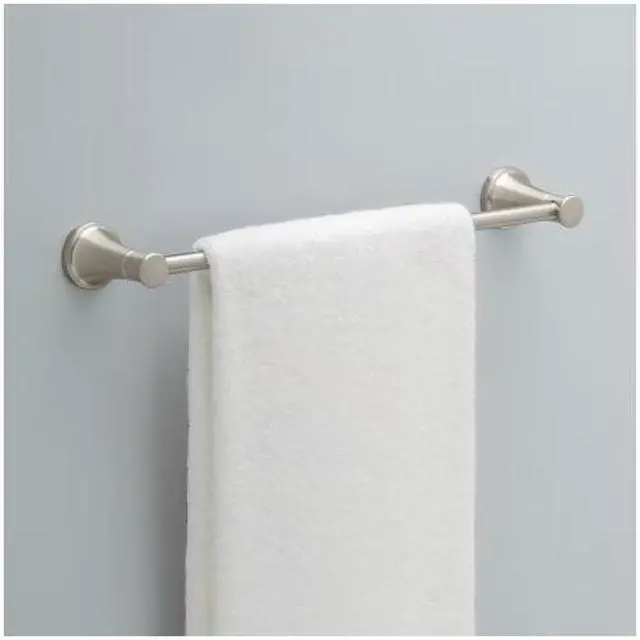 The clean, transitional style of the Delta Casara Bath Collection suits any bathroom. This 18 in. towel bar holds a single towel or two hand towels to utilize wall-mounted storage. Complete your space with coordinating pieces from the full collection