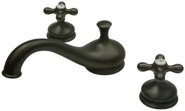 Finish: Oil Rubbed Bronze Finish; Material: Brass; Country Of Origin: Taiwan, Roc; Theme: Classic; Faucet Holes: 3; Valve Type: 1/4 Turn Ceramic Disc Cartridge; Faucet Centers: 8, 16; Spout Height: 4.50; Spout Reach: 8.50; Spray Settings: 1; Spray Pattern: Normal; Handle Style: Metal Cross; Handles Included: Yes; Number Of Handles: 2; Escutcheon: No; Pullout Spray: No; Sidespray: No; Soap Dispenser: No;