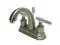 Finish: Satin Nickel/Chrome Finish; Material: Brass; Country Of Origin: Taiwan, Roc; Theme: Contemporary / Modern; Faucet Holes: 2; Valve Type: 1/4 Turn Ceramic Disc Cartridge; Faucet Centers: 4; Spout Height: 6; Spout Reach: 4.75; Max Deck Thickness: 1.25; Spray Settings: 1; Spray Pattern: Normal; Handle Style: Metal Lever; Handles Included: Yes; Number Of Handles: 2; Escutcheon: No; Pullout Spray: No; Sidespray: No; Soap Dispenser: No;