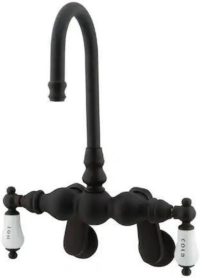 Brass Construction, Oil Rub Bronze Finish, Tub-Wall Mount Clawfoot Tub Filler, 1/4 Turn Ceramic Disk Cartridge, 8-1/8 Spout Reach , 3-3/8 - 9 Spread