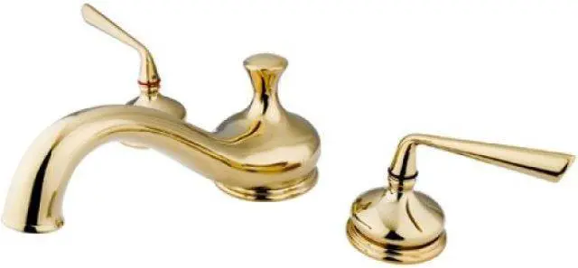 Finish: Polish Brass Finish; Material: Brass; Country Of Origin: Taiwan, Roc; Theme: Classic; Faucet Holes: 3; Valve Type: 1/4 Turn Ceramic Disc Cartridge; Faucet Centers: 8, 16; Spout Height: 4.50; Spout Reach: 8.50; Spray Settings: 1; Spray Pattern: Normal; Handle Style: Metal Lever; Handles Included: Yes; Number Of Handles: 2; Escutcheon: No; Pullout Spray: No; Sidespray: No; Soap Dispenser: No;