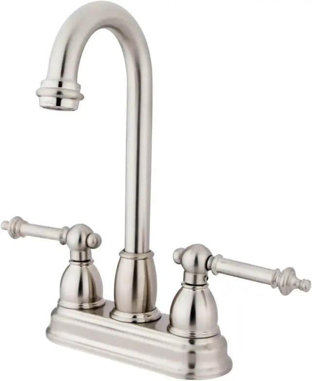 Finish: Satin Nickel Finish; Material: Brass; Country Of Origin: Taiwan, Roc; Theme: Classic; Faucet Holes: 2; Flow Rate: 2.2 Gpm; Valve Type: 1/4 Turn Washerless Cartridge; Faucet Centers: 4; Spout Height: 10; Spout Reach: 3.75; Max Deck Thickness: 1.25; Spray Settings: 1; Spray Pattern: Normal; Handle Style: Metal Lever; Handles Included: Yes; Number Of Handles: 2; Escutcheon: No; Pullout Spray: No; Sidespray: No; Soap Dispenser: No;
