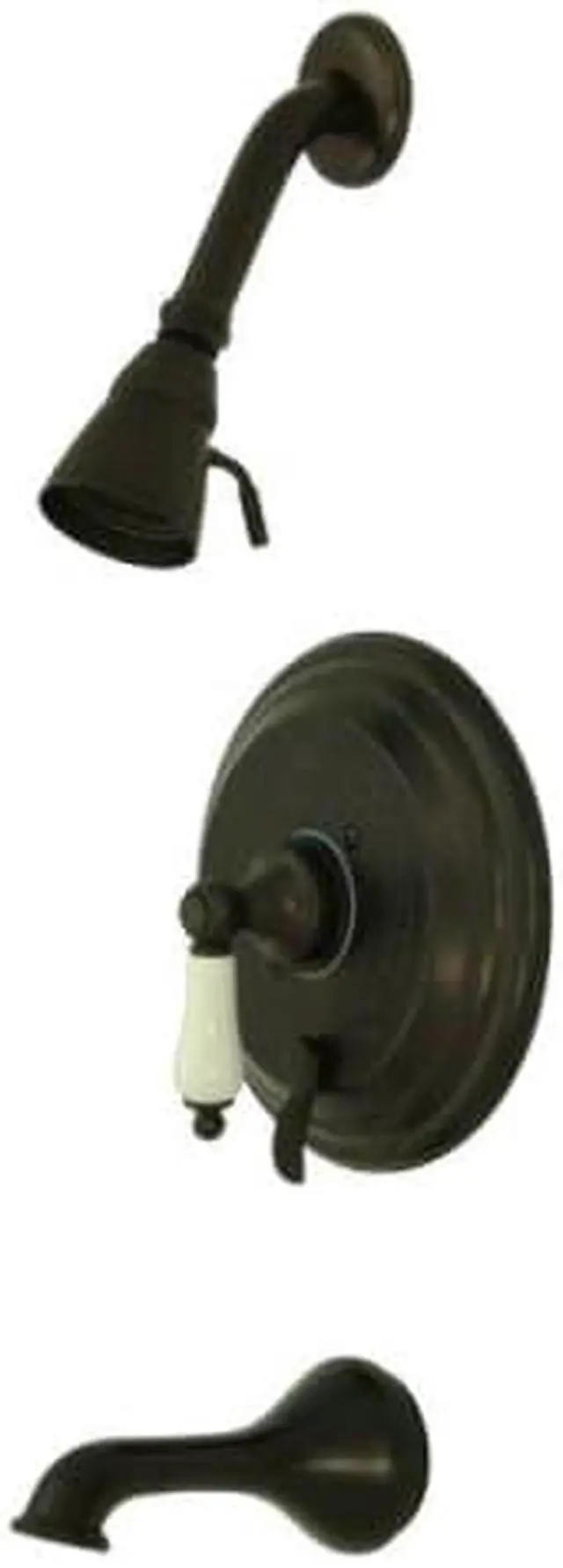 Finish: Oil Rubbed Bronze Finish; Material: Brass; Country Of Origin: Taiwan, Roc; Theme: Classic; Flow Rate: 2.2 Gpm; Valve Type: Ball Pattern Washerless Cartridge; Spray Settings: 1; Spray Pattern: Normal; Handle Style: Porcelain Lever; Handles Included: Yes; Number Of Handles: 1; Escutcheon: Yes; Pullout Spray: No; Sidespray: No; Soap Dispenser: No;