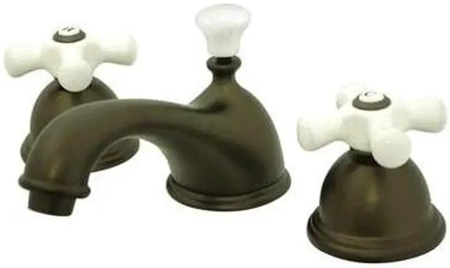 Two Handle Deck Mount, 3 Hole Sink Application, 8" to 16" Mini-Widespread, Fabricated from solid brass material for durability and reliability, Premium color finish resists tarnishing and corrosion, 1/4 turn On/Off water control mechanism, 1/2" IPS male threaded shank inlets, Ceramic disc cartridge, 2.2 GPM (8.3 LPM) Max at 60 PSI, Integrated removable aerator, 6-1/2" spout reach from faucet body, 3-1/2" overall height.
