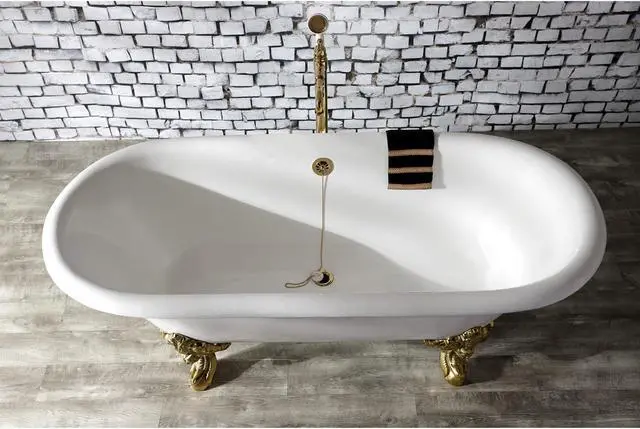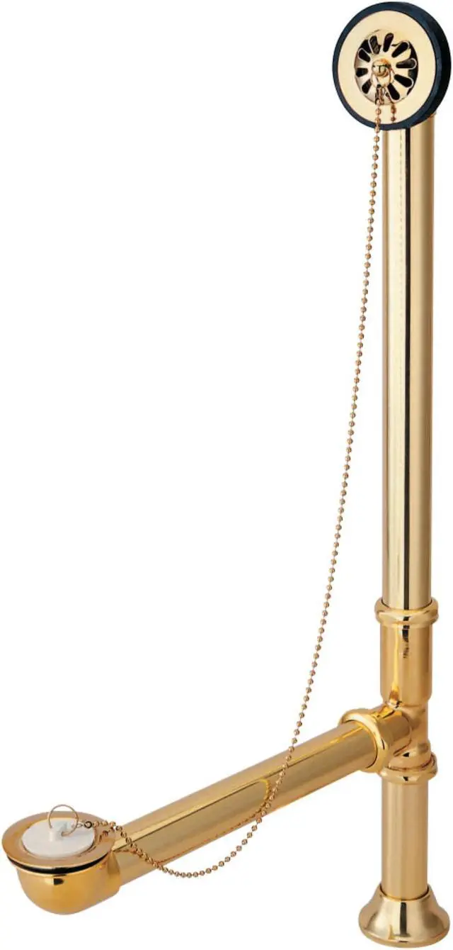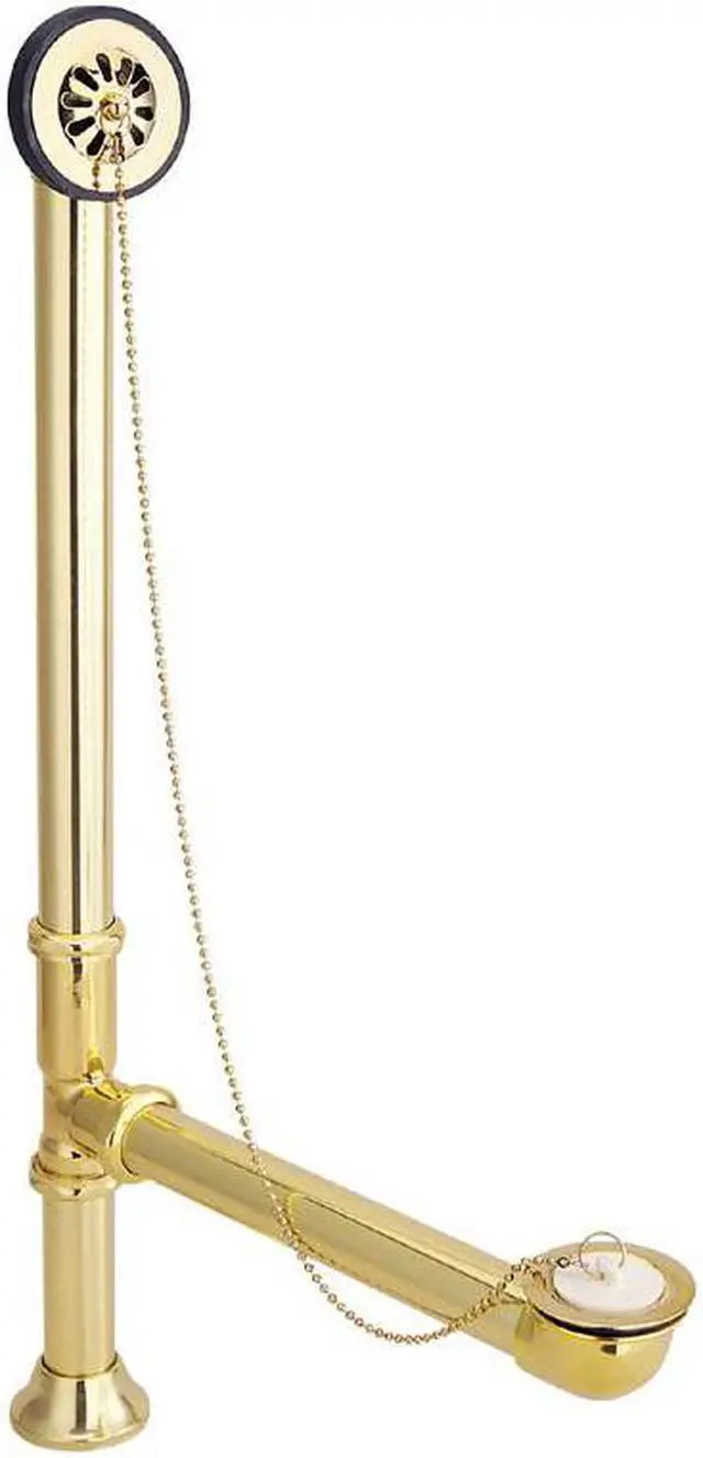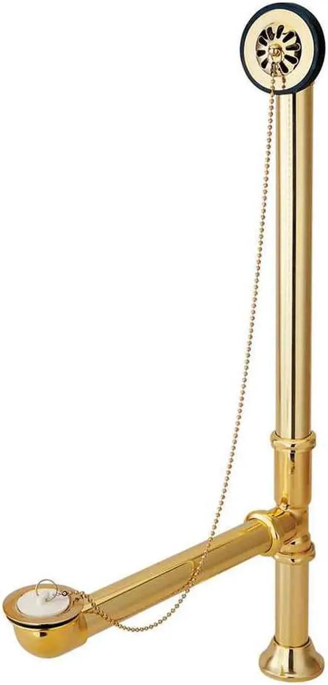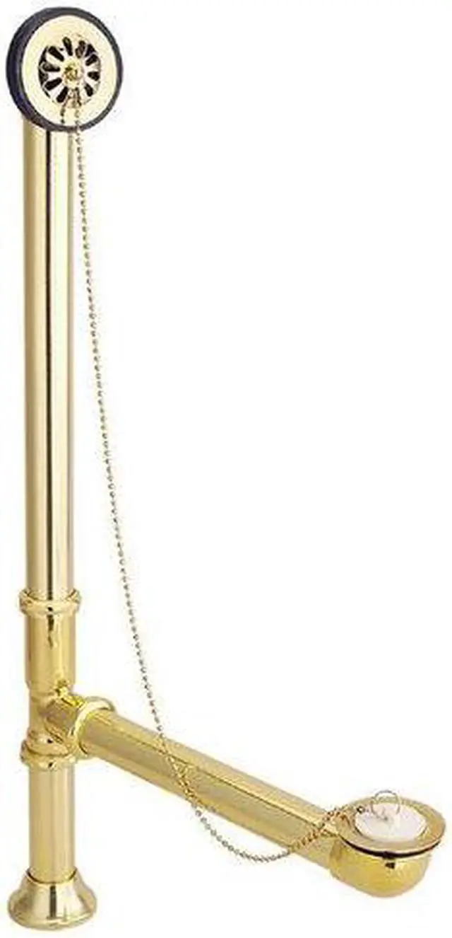 Kingston Brass was established in May of 1998 by a group of talented plumbing professionals; back up by a group of vision plumbing products manufactures. Kingston Brass has focus corporate vision and corporate mission to become a value provider in plumbing community. Kingston Brass had grown rapidly and was recognized as a value provider in product value and excellent quality source for designer faucetry and vintage accessories - well respected for superior products with exceptional quality products at affordable prices. Known for beautifully made superior engineering fashion designed bathroom and kitchen hardware Kingston Brass is a young growing but exciting member of the plumbing fixture community. . Over Length Brass Tube. Brass Pull Chain. Rubber Stopper. 1.5in OD Brass Tub. Max 27in Height - 14in Depth. Polished brass finish