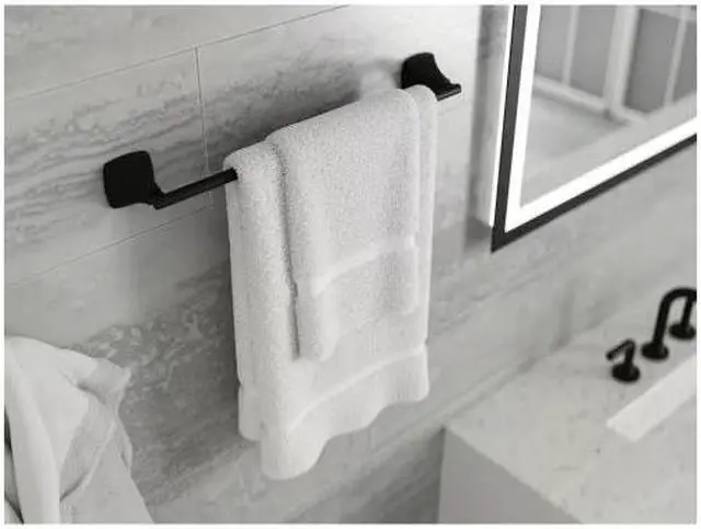BATHROOM TOWEL BAR - Transitional style complements any decor; concealed screw installation hides the mounting screws to create a seamless look and feel